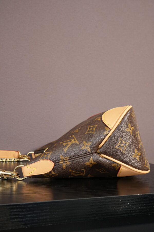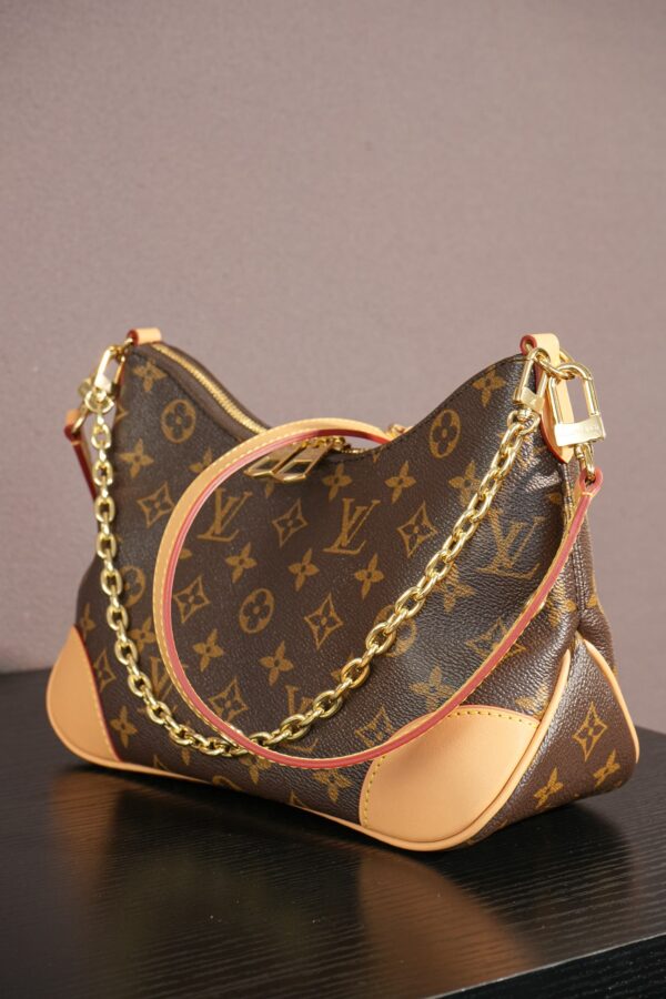This Nano Boulogne bag pays homage to the brand’s heritage with classic Monogram canvas and highlights the new season’s design with contrasting leather trims. Its compact shape makes it easy to carry all your daily essentials, and the detachable metal chain allows for versatile carrying options.