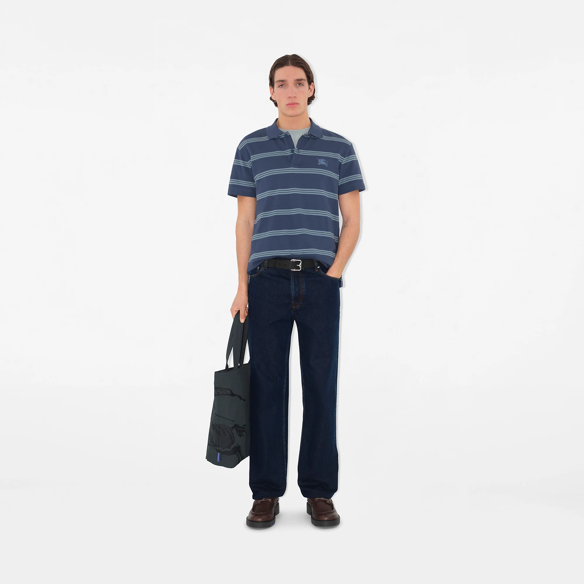 A polo shirt made in Italy from cotton piqué knitted with contrasting stripes. The style is cut to a slim fit and subtly embroidered with our Equestrian Knight Design.
